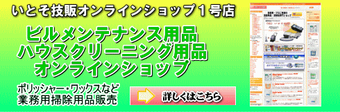 業務用ポリッシャー・ワックス・各種ケミカルなどビルメンテナンス業者様からハウスクリーニング用品に至るまで、1,200を超えるアイテムを取り揃えております。あなたの求めている清掃お掃除用品がきっと見つかると思います。⇒詳しくはこちら
